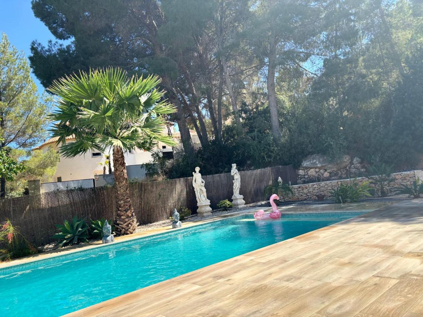 La villa dispone de piscina al aire libre, además de terraza.