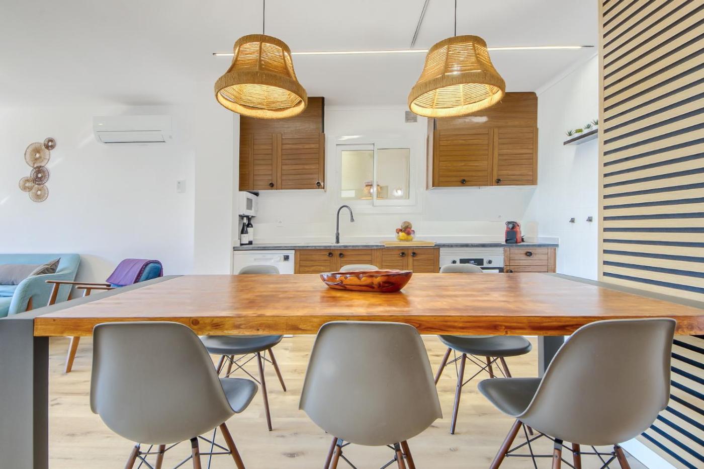 El apartamento cuenta con 3 dormitorios, 2 baños, ropa de cama, toallas, TV de pantalla plana, zona de comedor, cocina totalmente equipada y terraza con vistas al mar.