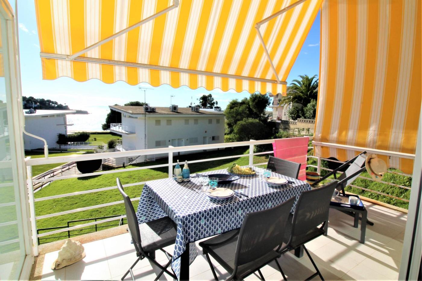Global Immo 2155 Almadrava Platja, que cuenta con vistas al mar, ofrece alojamiento con terraza y balcón a unos 1 min a pie de Playa LAlmadrava. Este apartamento también dispone de piscina privada.